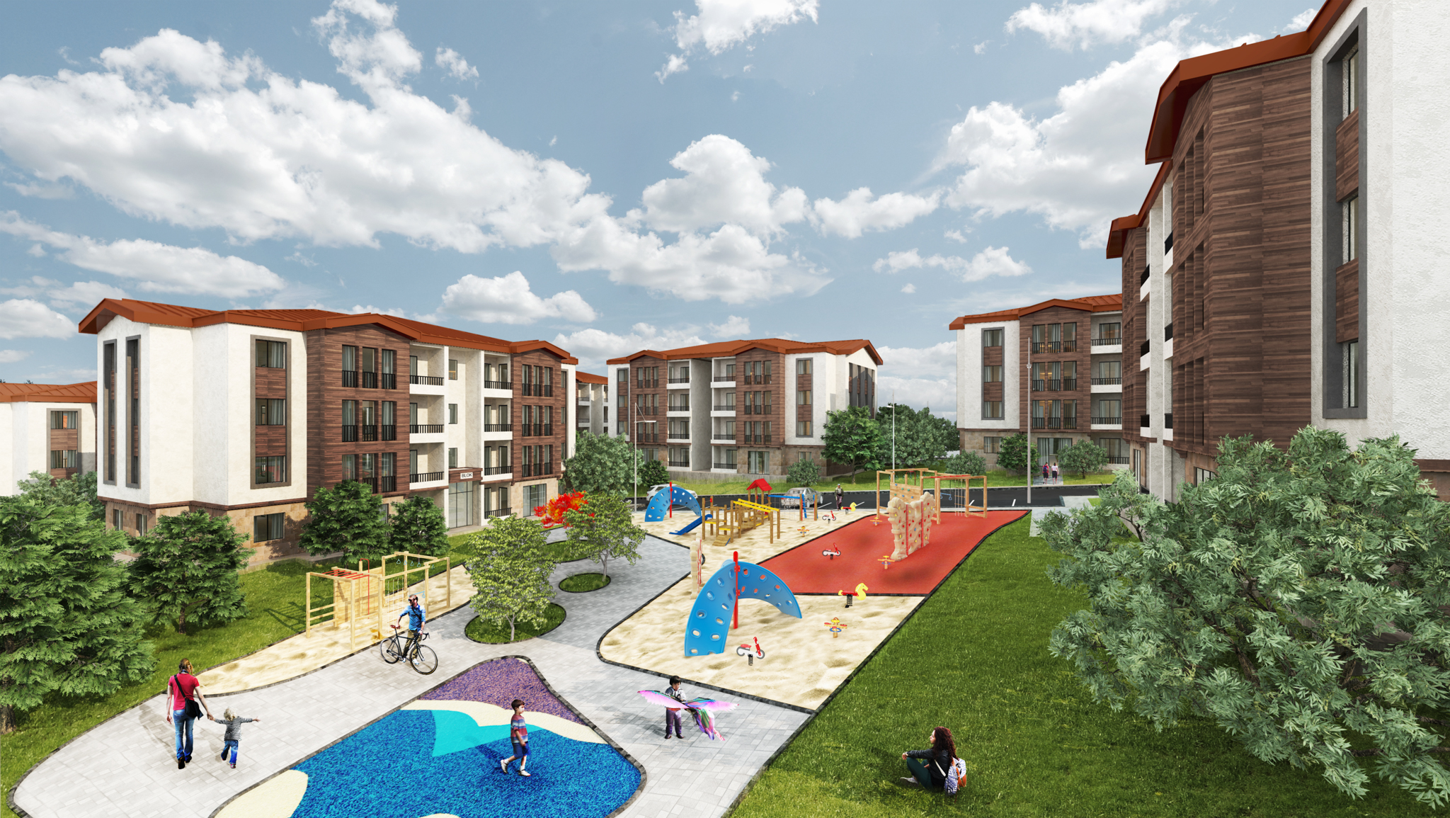 • Sosyal yaşam alanları: Çocuk oyun parkları, yürüyüş yolları, dinlenme alanları